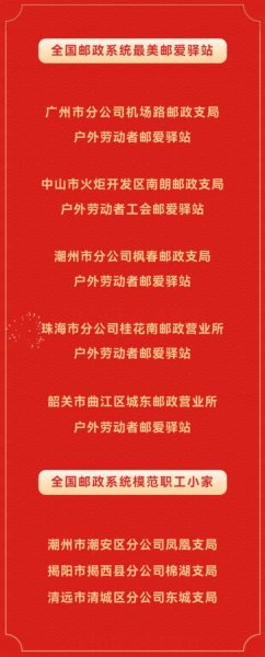 同時,廣東郵政有5個郵愛驛站和3個職工小家分別獲評全國郵政系統(tǒng)最美郵愛驛站和全國郵政系統(tǒng)模范職工小家稱號。