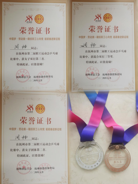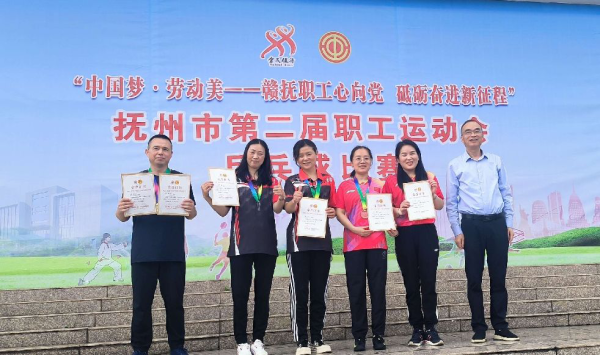 撫州市郵政職工周楠(上圖右3)參加了本次職工運(yùn)動(dòng)會(huì)乒乓球比賽,取得了女子團(tuán)體第二名、女子雙打第三名和混合雙打三等獎(jiǎng)的好成績(jī)。(江西省郵政工會(huì))