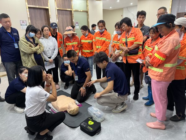 活動分為夏季防中暑安全知識講座和心肺復(fù)蘇急救培訓(xùn)兩部分,茂名市120急救培訓(xùn)中心馬老師從中暑的判斷、預(yù)防、處理等方面,現(xiàn)場為大家生動細(xì)致講解常見的急救知識以及心臟驟停的注意事項,從胸外按壓、維持循環(huán)、開放氣道等各個步驟進(jìn)行了深入淺出、全面詳實(shí)的心肺復(fù)蘇搶救講授和演示,讓大家在遇到突發(fā)事件時能夠快速有效地進(jìn)行應(yīng)對。