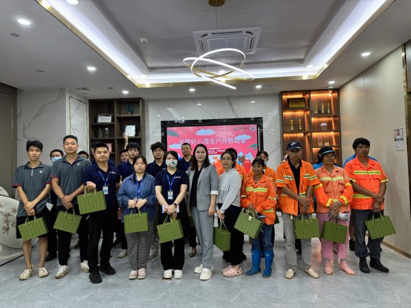 最后,茂名市分公司聯(lián)合市總工會為現(xiàn)場的新就業(yè)形態(tài)和戶外勞動者代表發(fā)放含有小風(fēng)扇、杯子等實(shí)用物品的暖心禮盒。