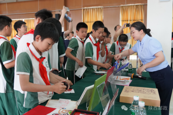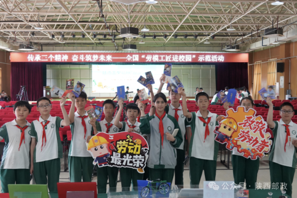 現(xiàn)場的勞模工匠主題郵局巡展,吸引學(xué)生們前來參觀。工作人員為學(xué)生們發(fā)放“最美勞動者”“大國工匠”明信片,講解“勞動美”及“精彩陜西”集郵展覽。三位勞模工匠現(xiàn)場與學(xué)生進行互動,簽名留言,讓學(xué)生們從心靈深處感悟勞動的意義,體會勞動光榮、創(chuàng)造偉大,引導(dǎo)同學(xué)們尊重勞動、熱愛勞動,教育同學(xué)們成長成才,取得了良好的效果?!斑@是我第一次見到勞模工匠,真心佩服,也很受鼓舞,還得到了勞模工匠們簽名的明信片,特別高興,要向他們學(xué)習(xí)?!?2歲的六年級學(xué)生蒲雨洋說。