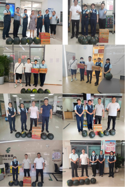 盛夏來臨,氣溫持續(xù)攀高。面對突來的高溫,平頂山市分公司高度重視,總經(jīng)理親自部署夏日“送清涼”慰問工作,工會主席第一時間安排各單位工會組成工作小組,制定防暑降溫、安全生產(chǎn)預案。平頂山市郵政工會迅速采購了第一批防暑降溫物品,第一時間分發(fā)給各單位工會。東區(qū)、西區(qū)分公司工會在6月11日,12日分別對7個攬投部、8個郵政支局進行了慰問,向高溫下依然奮戰(zhàn)在一線的同志們送去了西瓜、礦泉水、去火茶和綠豆。炎炎夏日送清涼,濃濃關(guān)愛沁人心,6月13日李志斌總經(jīng)理帶隊、王勇主席陪同前往市網(wǎng)運中心、攬投部進行了親切慰問,為一線職工送去防暑降溫物品。李總強調(diào),在高溫天氣下,人員的生命安全高于一切,一定要在重要環(huán)節(jié)采取應急措施,合理進行生產(chǎn)作業(yè)組織,時刻保持現(xiàn)場通風,要24小時做到有人值守,特別是卸車環(huán)節(jié)的生產(chǎn)人員,要重點進行防高溫措施的落實。