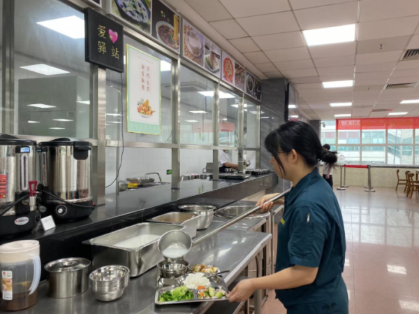 同樣細(xì)心、周到的服務(wù)還體現(xiàn)在自助取用區(qū),員工們可以根據(jù)食量自由選擇“小碗湯”或者“大碗湯”,也可以按需加飯,有效減少了餐飲浪費(fèi)。墻上張貼著的“珍惜糧食,拒絕浪費(fèi)”等系列宣傳畫,無(wú)聲卻有力地傳達(dá)著勤儉節(jié)約的美德,成為食堂內(nèi)一道亮麗的文化風(fēng)景線。