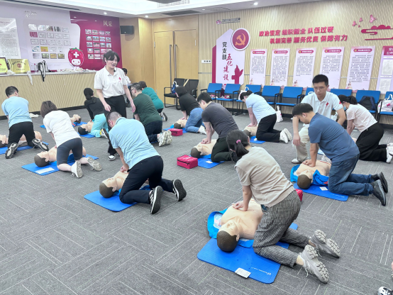 培訓(xùn)現(xiàn)場(chǎng),老師們通過情景模擬、現(xiàn)場(chǎng)演練、一對(duì)一指導(dǎo)等方式,講解了心肺復(fù)蘇及氣道異物急救的操作原理,重點(diǎn)介紹了心肺復(fù)蘇動(dòng)作要領(lǐng)、AED儀器的操作方法、外出血?jiǎng)?chuàng)傷包扎的施救步驟。在隨后的實(shí)操階段,學(xué)員們?cè)谂嘤?xùn)導(dǎo)師的指導(dǎo)下,利用操作模型,“沉浸式”體驗(yàn)了搶救傷員的場(chǎng)景。培訓(xùn)現(xiàn)場(chǎng)氣氛熱烈,學(xué)員們求知若渴,授課老師和學(xué)員之間互動(dòng)頻繁。經(jīng)考核,參培職工全員獲得紅十字救護(hù)員證書。