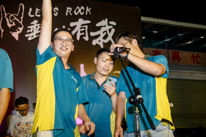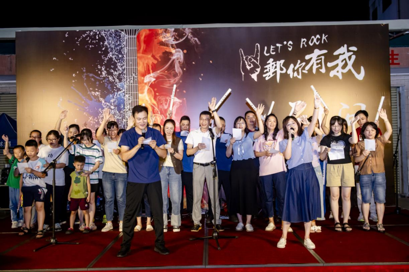 演出當晚,樂隊成員們身著統(tǒng)一的服裝,精神飽滿地登上了舞臺,盡管天氣炎熱,但他們的熱情絲毫不減。演出在一首《真的愛你》中拉開序幕,歌曲由順德郵政工會主席彭智燊領唱,樂隊成員們用精湛的技藝和飽滿的熱情點燃了現(xiàn)場觀眾的熱情,職工們紛紛跟隨音樂的節(jié)奏揮舞著手中的熒光棒,氣氛熱烈而溫馨。