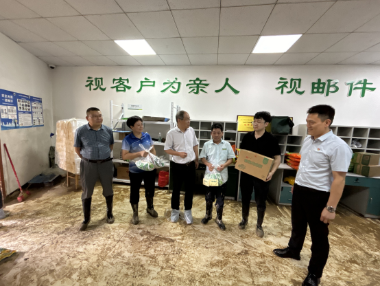 在受災嚴重的州門司支局,慰問組詳細了解了支局網點、職工與家庭等受災情況以及災后職工的生產生活現(xiàn)狀,劉主席叮囑相關人員要加強統(tǒng)籌調度,快速幫扶支局網點渡過難關,并送上了飲用水、方便面等生活物資以及藿香正氣液藥等必備藥品,支持支局網點災后重建。