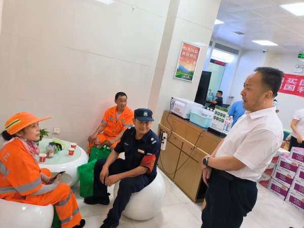 靳海斌對郵愛驛站的建設和管理工作提出贊揚。向現(xiàn)場的職工和戶外勞動者在高溫天氣下的堅守表示敬意,叮囑大家做好防暑降溫,注意勞逸結合。
