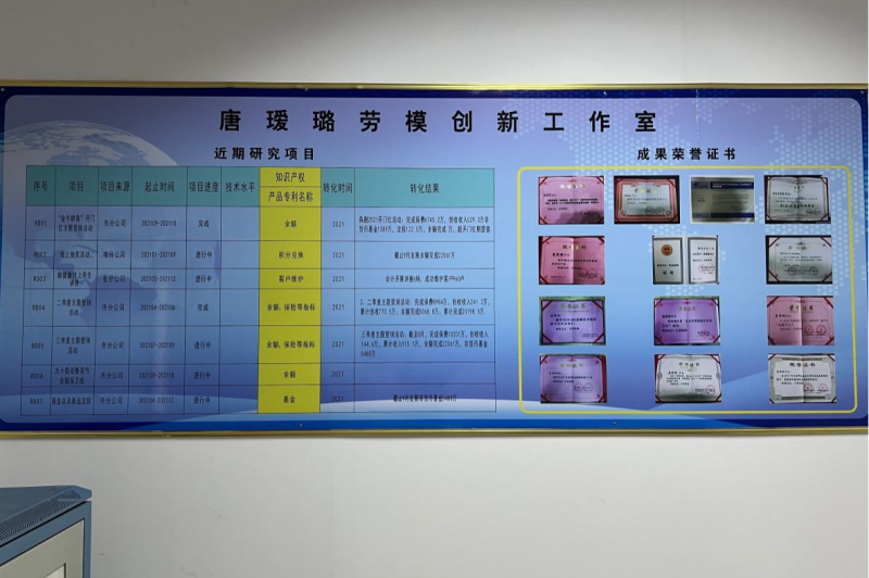 “唐璦璐勞模創(chuàng)新工作室”成立后,已經(jīng)成為一個銳意創(chuàng)新、攻堅克難的陣地。該工作室把開展管理創(chuàng)新、方法創(chuàng)新、服務創(chuàng)新和業(yè)務創(chuàng)新作為主要任務,將先進的管理經(jīng)驗、方法和成果轉(zhuǎn)化為具體實踐,有效提升了相關業(yè)務水平。