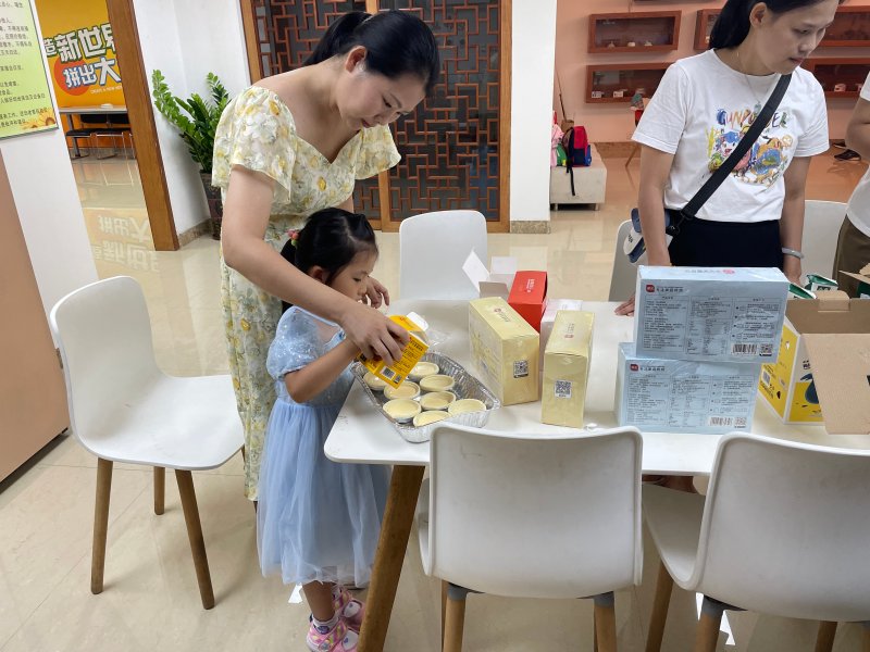 在烘焙課堂上,員工們帶著孩子們滿懷熱情地投入到制作蛋撻的過程中。從攪拌蛋液、注入牛奶,到精細(xì)過濾,直至蛋撻出爐,現(xiàn)場洋溢著歡聲笑語。員工們大家相互分享著自己親手完成的蛋撻,紛紛表示即便是“烘焙新手”,也能在此次活動(dòng)中收獲滿滿。