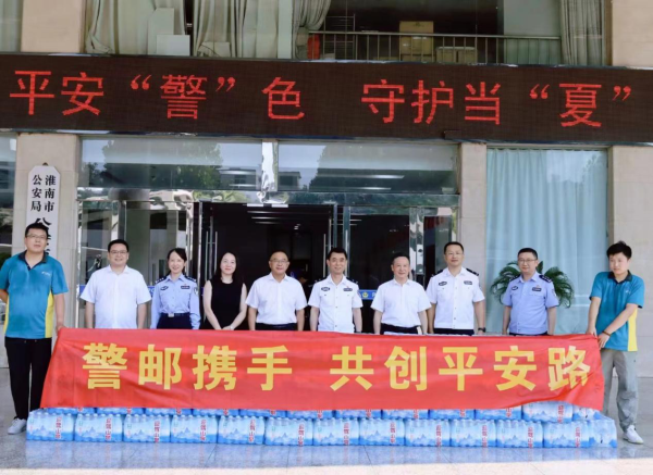 炎熱仲夏,淮南市分公司黨委書記張帆,工會(huì)主席陶慶余攜快遞員代表赴淮南市交警支隊(duì)開展“警郵攜手 共創(chuàng)平安路”送清涼慰問活動(dòng),為堅(jiān)守在一線的公安交警送上郵政企業(yè)的關(guān)懷祝福,送上綠茶、礦泉水等慰問品。