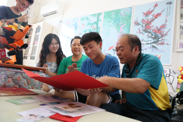 “熊文康!快來看看,我手上拿的是什么?”走進家門,熊桂林抑制不住滿臉的笑容,揚起手中那份紅彤彤的錄取通知書,迫不及待地和家人分享這個好消息??吹绞歉赣H送來了通知書,熊文康非常意外,趕緊迎了上來。