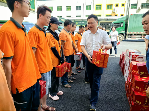 驕陽似火,酷暑難當(dāng)。基層投遞人員的工作熱情絲毫不減,反而“越熱越火”,大家戰(zhàn)高溫、斗酷暑,把辛勤的汗水揮灑在郵件投遞和攬收一線。在南岳區(qū)分公司攬投部,王玥親自為投遞人員逐一送上牛奶、水果、方便面、礦泉水等慰問物資,代表省分公司黨委、行政及工會(huì)對一線職工的辛勤工作表示親切慰問和衷心感謝,并再三囑咐大家要做好防暑降溫、注意勞逸結(jié)合、關(guān)注身體健康、合理安排作息時(shí)間,切實(shí)保障在工作中的安全。同時(shí)要求市、區(qū)分公司負(fù)責(zé)人要始終堅(jiān)持以人為本,積極應(yīng)對高溫天氣給正常工作帶來的困難與不便,做好做足高溫期間的各項(xiàng)安全防范措施,務(wù)必確保安全生產(chǎn)與業(yè)務(wù)發(fā)展兩不誤。