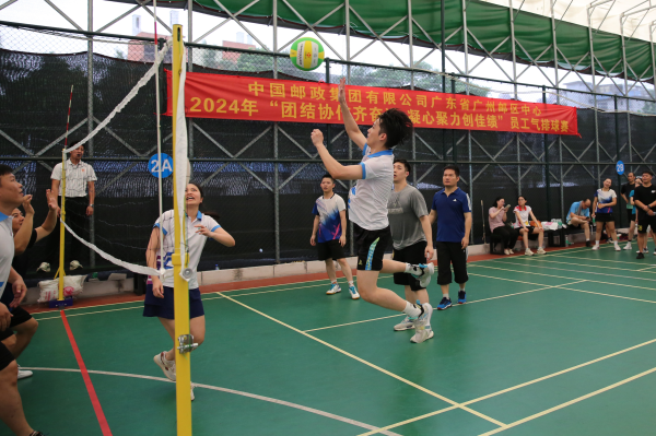 8月15日上午,盡管夏日炎炎,熱浪滾滾,但酷熱并未能阻擋廣州郵區(qū)中心員工的熱情與活力。賽場上,身著不同顏色隊服的參賽選手們斗志昂揚、奮力拼搏。每一次精準(zhǔn)的傳球,每一次有力的扣殺,每一次默契的配合,都引得在場觀眾熱烈喝彩。整個賽場人聲鼎沸,歡呼聲、助威聲、吶喊聲,此起彼伏。