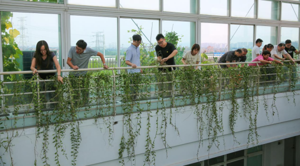 隨著時(shí)間的推移,一株株嫩綠的“光耀滕”在員工們的精心呵護(hù)下茁壯成長。它們逐漸伸展出茂密的枝葉,綻放出絢爛的花朵,仿佛是為迎接雙節(jié)同慶而特別準(zhǔn)備的祝福。此外,這些“光耀滕”不僅美化了職工小家的環(huán)境,還為員工們提供了一個(gè)放松心情、享受自然的綠色空間。忙碌之余,員工們都會(huì)不由自主地走到窗前,欣賞這些生機(jī)勃勃的綠色植物,感受它們帶來的清新與寧靜。