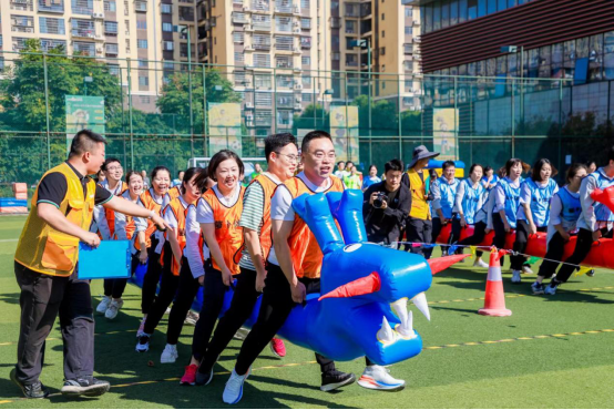 本次嘉年華運(yùn)動會由16支參賽隊(duì)伍250余名運(yùn)動員參加,共設(shè)置了8個項(xiàng)目,分別是財(cái)源滾滾、巨無霸投籃、飛龍?zhí)毓?、德藝雙馨、枕頭大戰(zhàn)、環(huán)游世界、動感五環(huán)、零食大作戰(zhàn)。每一個項(xiàng)目既是智慧和體力的角逐,更是團(tuán)隊(duì)協(xié)作的完美比拼。比賽前,參賽選手們?nèi)褙炞⒙犞门袉T對每個項(xiàng)目及得分技巧的講解,個個摩拳擦掌,躍躍欲試。隨著一聲令下,比賽開始了,參賽隊(duì)員們?nèi)σ愿?、相互配合、奮勇爭先。財(cái)源滾滾項(xiàng)目中,每隊(duì)10人進(jìn)行比拼,隊(duì)員通過協(xié)作配合使比賽器材在跑道上滾動前進(jìn),在隊(duì)員們的默契配合下以及啦啦隊(duì)的歡呼聲中,各個隊(duì)伍順利到達(dá)了終點(diǎn)。整場比賽,參賽選手們元?dú)鉂M滿、團(tuán)結(jié)一致、配合默契,展現(xiàn)了長沙郵政廣大干部職工們積極向上、團(tuán)結(jié)協(xié)作的精神風(fēng)貌。