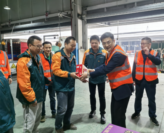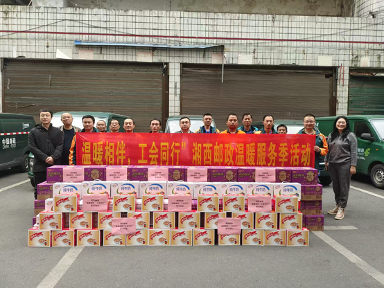 2024 年 11 月 14 日,“雙十一”快遞業(yè)務(wù)旺季之際,湘西州分公司負(fù)責(zé)人單鋒總,副總經(jīng)理彭迎國;副總經(jīng)理、工會(huì)主席劉春華;攜州分公司辦公室、工會(huì)等相關(guān)部室負(fù)責(zé)人一行,先后深入桐油坪攬投部、普郵攬投部、網(wǎng)路運(yùn)營中心等一線生產(chǎn)現(xiàn)場,為辛勤工作的員工們送上了方便面、牛奶、八寶粥等慰問品;積極開展“溫暖相伴,工會(huì)同行”溫暖服務(wù)季關(guān)愛慰問活動(dòng)。