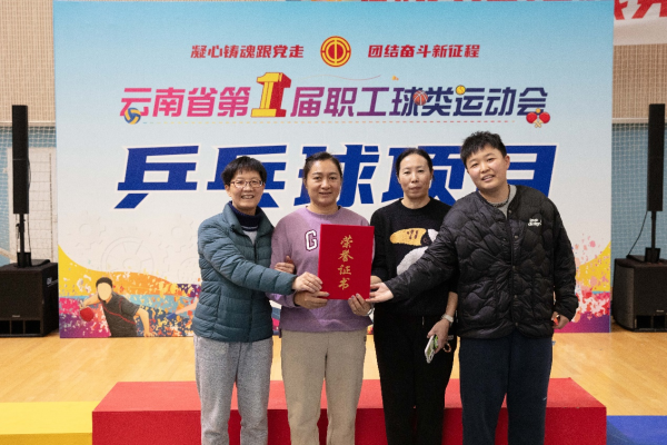 乒乓球女子團體參賽隊員分別是省分公司的沈雋和崔瀛丹、楚雄分公司的趙小豫、普洱分公司的李曉英。在為期6天的比賽中,面對眾多強勁對手,參賽隊員們團結(jié)一心,憑借精湛的球技與堅韌的毅力,在比賽中突出重圍,贏得了難能可貴的榮譽。