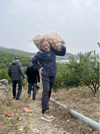當(dāng)走進(jìn)甌柑園時,看著黃澄澄的甌柑掛滿枝頭,大家都已迫不及待地拿起剪刀和蛇皮袋,三五結(jié)對自行組建了各自采摘隊伍,大家分工合作,有的負(fù)責(zé)拿蛇皮袋裝甌柑,有的負(fù)責(zé)拿剪刀采摘甌柑,紛紛興高采烈地采摘著飽滿溜圓的甌柑。在采摘的過程中,大家一邊采摘,一邊忍不住現(xiàn)場品嘗,還不時拿出手機(jī)留下精彩瞬間,忙的不亦樂乎。在每個采摘隊伍通力合作下,不多時,大家手中袋子都有了滿滿的收獲,臉上洋溢著豐收的喜悅。最后每個采摘隊伍將他們各自裝滿蛇皮袋裝的甌柑一個個扛下山,并在山下將自己的勞動成果一個個打包。