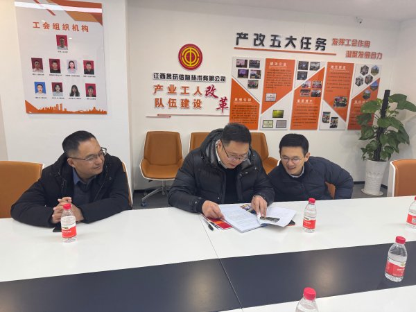為推動國有企業(yè)與民營企業(yè)在產(chǎn)業(yè)工人隊伍建設(shè)改革方面的深入合作,共同探索出一條適應(yīng)新時代要求、符合雙方利益的產(chǎn)改新路徑,12月20日,江西省郵政工會副主席張 華攜上饒市郵政工會主席陳超、工會副主席童英俊一行,來到省郵政公司結(jié)對幫扶民企產(chǎn)改單位——江西貪玩信息技術(shù)有限公司,深入開展專題調(diào)研,詳細了解企業(yè)生產(chǎn)經(jīng)營、產(chǎn)改推進和工會工作情況。