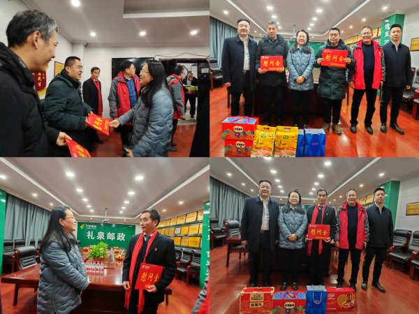 年末歲寒“送溫暖”,真情關(guān)愛“暖人心”。1月6日下午,省分公司黨委委員、副總經(jīng)理、工會(huì)主席劉磊、省寄遞事業(yè)部副總經(jīng)理郭繼東、李潤(rùn)錄一行赴禮泉縣分公司開展調(diào)研慰問,先后實(shí)地查看了郵件處理中心、寄遞營(yíng)攬中心、東二環(huán)郵政支局,了解旺季業(yè)務(wù)發(fā)展和職工生產(chǎn)生活等情況,并在春節(jié)來臨之際,親切看望奮戰(zhàn)在一線的廣大職工,為大家送去水果、牛奶等慰問品,向困難職工、先進(jìn)個(gè)人送上慰問品和慰問金,將工會(huì)“娘家人”的溫暖送到職工心坎上。