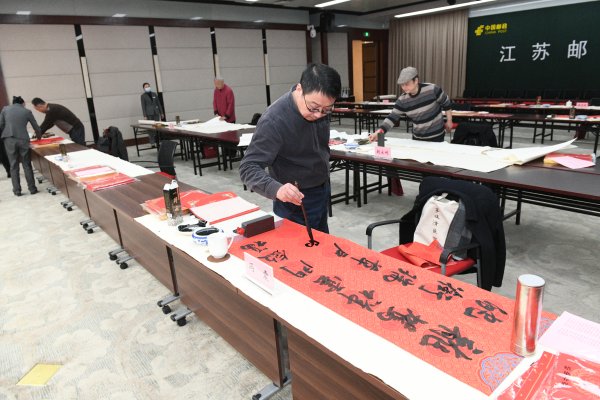 春節(jié)將至,為營(yíng)造歡樂(lè)祥和的節(jié)日氛圍,弘揚(yáng)中華傳統(tǒng)文化,豐富廣大職工的精神文化生活,1月16日,江蘇省分公司機(jī)關(guān)工會(huì)邀請(qǐng)部分在寧中書(shū)協(xié)會(huì)員、江蘇省郵政書(shū)法協(xié)會(huì)員開(kāi)展“翰墨郵情 喜迎新春”書(shū)畫(huà)家寫(xiě)春聯(lián)、送福字活動(dòng),為職工送上一份滿(mǎn)滿(mǎn)年味的“禮包”。