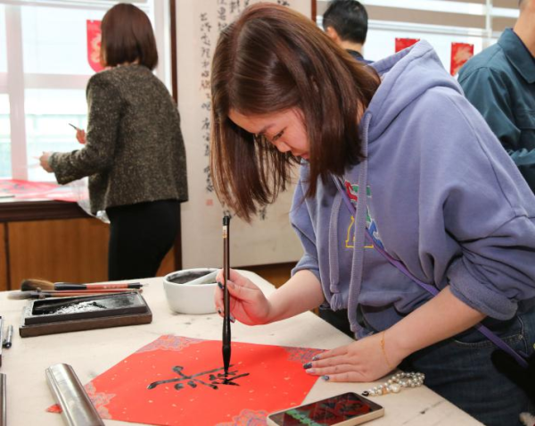 此外,老師們還現(xiàn)場傳授書寫技巧,鼓勵有興趣的員工親自嘗試,體驗書寫的樂趣。許多員工躍躍欲試,紛紛握起毛筆,感受那份源于古人的智慧與文化沉淀??粗约河H手寫下的字跡,每個人都沉浸在了傳統(tǒng)與創(chuàng)新交織的快樂之中,進一步加深了對春節(jié)傳統(tǒng)文化的理解。