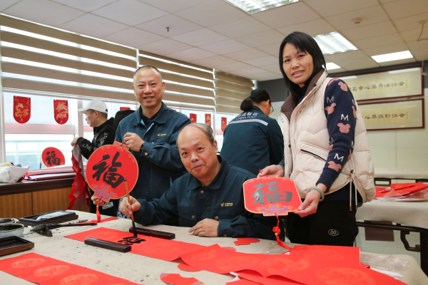 活動現(xiàn)場,墨香四溢,紅紙鋪展,特邀的書法老師們揮毫潑墨,一筆一劃間盡顯神韻,將滿載著吉祥寓意的春聯(lián)贈予在場的每一位員工。這些春聯(lián)不僅字體遒勁有力,內(nèi)容更是寓意深遠,既有對過去一年辛勤付出的肯定,也有對新一年美好生活的熱切期盼。