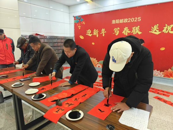 在新春佳節(jié)即將到來之際,為弘揚(yáng)中華傳統(tǒng)文化,豐富職工的精神文化生活,洛陽市郵政工會于1月17日上午在市分公司一樓大廳開展了“迎新年· 寫春聯(lián)·送祝福”職工書法活動,向廣大職工送去新年祝福。紅紅的紙張,喜慶的墨字,傳遞著市分公司黨委和工會對職工的關(guān)懷,為新春佳節(jié)增添了濃厚的文化氛圍,也讓大家在墨香中體會到了中華優(yōu)秀傳統(tǒng)的魅力。(河南省郵政工會)