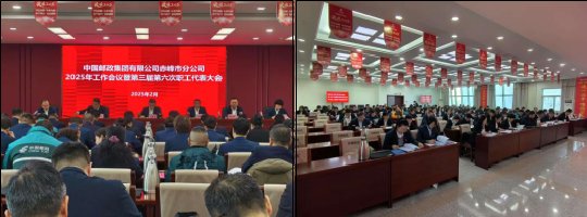 2月8日,赤峰市郵政分公司2025年工作會議暨第三屆第六次職工代表大會以現(xiàn)場會與視頻會相結(jié)合方式勝利召開。全市職工代表,市分公司領(lǐng)導(dǎo)班子成員,寄遞事業(yè)部班子成員,市分公司現(xiàn)業(yè)四級副以上干部,旗縣區(qū)分公司總經(jīng)理等在主會場參加會議;旗縣區(qū)在家班子成員,寄遞負(fù)責(zé)人,各部門(中心)負(fù)責(zé)人等在分會場參加會議。