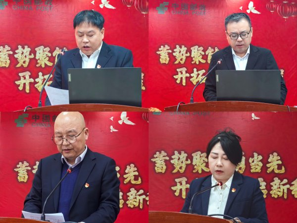 黨委書記王偉作了題為《堅(jiān)定戰(zhàn)略自信 勇于擔(dān)當(dāng)作為 深化改革創(chuàng)新 多領(lǐng)域?qū)崿F(xiàn)咸陽郵政高質(zhì)量發(fā)展》工作報告,以“六個緊盯”全面回顧了2024年主要工作成效,并深入分析存在問題與發(fā)展形勢,安排2025年重點(diǎn)工作任務(wù)。2025年是“十四五”規(guī)劃收官之年,也是“十五五”規(guī)劃的謀劃之年。按照集團(tuán)“全面構(gòu)建十大體系,落實(shí)八項(xiàng)重點(diǎn)工作”及省分公司“七個加快”發(fā)展要求,通過“六大行動”構(gòu)建咸陽郵政高質(zhì)量發(fā)展新格局。即實(shí)施攻堅(jiān)行動,確保全年目標(biāo)穩(wěn)中提質(zhì);實(shí)施深耕行動,確保央企責(zé)任穩(wěn)中有為;實(shí)施轉(zhuǎn)型行動,確保寄遞改革穩(wěn)中求新;實(shí)施升級行動,確保管理治理穩(wěn)中加固;實(shí)施引領(lǐng)行動,確保黨業(yè)融合穩(wěn)中求進(jìn);實(shí)施共建行動,確保人文管理穩(wěn)中向好。