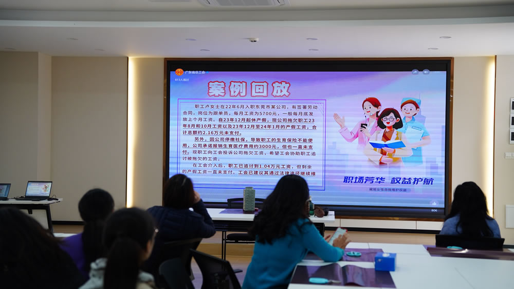 活動(dòng)伊始,以“職場(chǎng)芳華 權(quán)益護(hù)航——賦能女性自我維護(hù)權(quán)益”為主題的直播講座正式開(kāi)啟。講座邀請(qǐng)了資深法律專(zhuān)家,圍繞女職工在職場(chǎng)中可能遇到的勞動(dòng)權(quán)益保障、職業(yè)發(fā)展限制、生育權(quán)益等熱點(diǎn)問(wèn)題,結(jié)合實(shí)際案例,深入淺出地進(jìn)行了詳細(xì)解讀。女職工們認(rèn)真聆聽(tīng),主持人與專(zhuān)家在一問(wèn)一答間,法律知識(shí)不再晦澀難懂,女職工們切實(shí)增強(qiáng)了依法維權(quán)的意識(shí),掌握了更多維護(hù)自身合法權(quán)益的有效途徑。