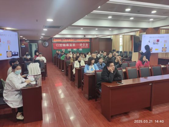 3月21日,時值第19個“世界口腔健康日”到來之際,為增強廣大職工口腔保健意識,普及口腔疾病防治知識,使職工更加及時準確地了解自身健康狀況,岳陽郵政工會根據職工實際需求,唱響工會“四季歌”,聯合岳陽市口腔醫(yī)院,在市分公司機關五樓會議室開展了“春送健康”口腔保健知識講座暨口腔義診活動。