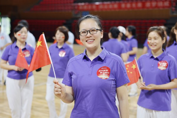 熱身運動開始,和著“沒有共產(chǎn)黨,就沒有新中國”的歌聲熱身舞跳起來,部門工會方陣之間的拉歌唱起來。一首首膾炙人口的紅色歌曲唱響,讓每位參與者在歷史與現(xiàn)實的交織中,重溫紅色歷史,傳承紅色文化,將“郵政綠”與“中國紅”緊緊地交融在一起。