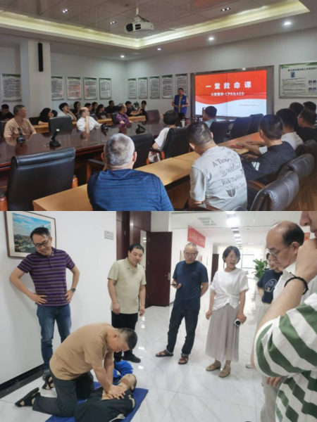 為強(qiáng)化健康保障,給員工提供更加全面和專(zhuān)業(yè)的健康支持,7月9日,省信息技術(shù)中心工會(huì)聯(lián)系邁瑞醫(yī)療廠家,組織開(kāi)講“一堂救命課”,科普日常急救知識(shí)。圍繞“拯救黃金4分鐘”主題,培訓(xùn)講師通過(guò)圖文視頻動(dòng)畫(huà),演示并講解了心臟工作原理、AED除顫原理、心臟驟停緊急處理流程,以及心肺復(fù)蘇(CPR)和人工呼吸的操作要點(diǎn),大家聽(tīng)得認(rèn)真而專(zhuān)注。隨后大家來(lái)到大廳走廊,在培訓(xùn)講師示范帶領(lǐng)下,大家利用AED訓(xùn)練機(jī)和訓(xùn)練假人,開(kāi)展急救模擬實(shí)操練習(xí)。在講師耐心指導(dǎo)下,在訓(xùn)練機(jī)反復(fù)提示下,大家從一開(kāi)始既緊張又興奮的忙亂,逐漸變得從容不迫,可以按照動(dòng)作要領(lǐng)有效完成整套急救流程。通過(guò)學(xué)習(xí)和訓(xùn)練,大家參與并代入到現(xiàn)場(chǎng)群眾性救護(hù)狀態(tài),掌握了基本救護(hù)常識(shí)和施救原則,學(xué)習(xí)了重要急救技能,培養(yǎng)了“人人學(xué)急救,人人敢急救”的良好社會(huì)責(zé)任意識(shí),也實(shí)現(xiàn)了“一堂救命課”的真正意義。