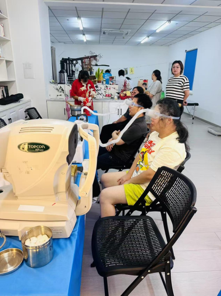 隨著電子產(chǎn)品的普及,視覺健康問題日益凸顯。為此,活動特別設(shè)置了電腦驗光區(qū),采用先進的驗光設(shè)備,為企業(yè)員工提供快速、準確的視力檢測服務(wù)。驗光師們根據(jù)檢測結(jié)果,為員工們提供了個性化的視力保護建議,包括佩戴合適的眼鏡或隱形眼鏡、合理安排用眼時間等,有效提升了員工的視覺健康意識?;顒犹貏e引入干眼霧化護理服務(wù),采用專業(yè)霧化設(shè)備為員工提供舒緩治療。通過溫和的霧化熏蒸,有效滋潤眼表、緩解眼部疲勞,改善因長時間用眼導(dǎo)致的干澀、灼熱等不適癥狀。