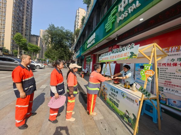 8月15日,榮昌郵政工會(huì)組織開展“郵愛驛站送清涼,真情服務(wù)暖人心”活動(dòng)??偨?jīng)理朱軍帶隊(duì)為環(huán)衛(wèi)工、快遞員、外賣人員、交巡警等戶外勞動(dòng)者送去防暑物資,用實(shí)際行動(dòng)為酷暑中的堅(jiān)守者撐起 “遮陽(yáng)傘”。