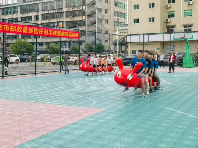 本次活動(dòng)以“喜迎國(guó)慶”為主題,精心設(shè)計(jì)了龍行天下、超級(jí)NBA、薪火相傳、同舟共濟(jì)、企鵝跑、足球九宮格、跳長(zhǎng)繩、趣味接力賽以及羽毛球等九大趣味與挑戰(zhàn)并存的比賽項(xiàng)目,吸引了全市郵政系統(tǒng)10支代表隊(duì)、共計(jì)200余名職工的熱情參與。