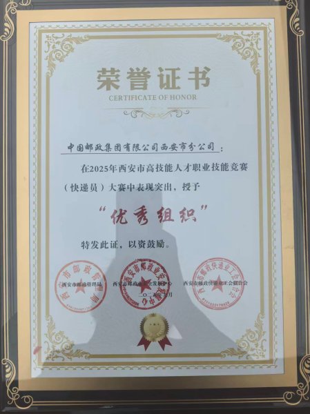 9月25日,西安市郵政管理局舉辦2025年西安市高技能人才職業(yè)技能競(jìng)賽快遞員大賽頒獎(jiǎng)儀式,西安市分公司榮獲“優(yōu)秀組織獎(jiǎng)”。