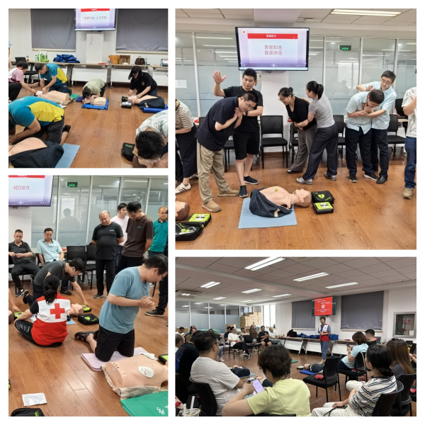 現(xiàn)場(chǎng)模擬實(shí)操環(huán)節(jié),更是工會(huì)為職工搭建的“沉浸式練兵場(chǎng)”。工會(huì)協(xié)調(diào)配備了足量的專業(yè)心肺復(fù)蘇模擬人、教學(xué)用AED設(shè)備,確保每位職工都有動(dòng)手練習(xí)的機(jī)會(huì);講師采用“分組教學(xué)+一對(duì)一指導(dǎo)”的方式,手把手糾正職工的操作細(xì)節(jié)——從雙手按壓的位置、力度、頻率,到人工呼吸的吹氣角度與時(shí)長(zhǎng),再到AED開(kāi)機(jī)、粘貼電極片、等待除顫等步驟,每一個(gè)動(dòng)作都要求精準(zhǔn)規(guī)范?!鞍磯簳r(shí)要保持上半身直立,用上半身力量往下壓,深度至少5厘米!”“AED提示‘正在分析心律’時(shí),一定要確保所有人遠(yuǎn)離患者,這既是保護(hù)他人,也是保護(hù)自己!”講師的耐心指導(dǎo)與反復(fù)強(qiáng)調(diào),讓職工們逐漸克服緊張情緒。不少職工主動(dòng)反復(fù)練習(xí),直到動(dòng)作標(biāo)準(zhǔn)才肯停下,“工會(huì)組織的這次培訓(xùn)太及時(shí)了,學(xué)會(huì)這些技能,不管是工作中還是生活里,遇到突發(fā)情況都不慌了!”攬投部的李師傅一邊練習(xí)一邊說(shuō)道。