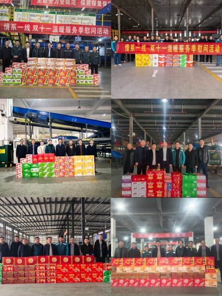 在“雙十一”旺季生產之際,商丘市分公司總經理和市公司黨委領導一行,深入全市各郵件處理中心開展旺季慰問活動,為堅守在一線的員工送去方便面、火腿腸、面包、綠茶等慰問品,并傳達了市公司黨委對一線員工的關心關愛。