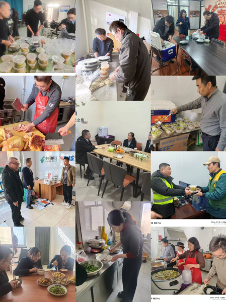活動現(xiàn)場,幫扶小組成員分工協(xié)作、默契配合:清洗食材時細致分揀、切配菜品時精準(zhǔn)均勻、烹飪過程中嚴(yán)控火候,大盤雞、牛肉小炒、繪小吃等一道道家常美味陸續(xù)出鍋,香氣彌漫整個廚房。飯菜出鍋后,工作人員迅速分裝、打包,頂著寒風(fēng)第一時間送至各基層攬投部、網(wǎng)點,將一份份熱氣騰騰的飯菜遞到忙碌的職工手中?!巴咎Ω绢櫜簧铣詿犸?,公司送來的不僅是飯菜,更是實實在在的關(guān)懷!”剛完成一批郵件分揀的攬投員接過飯菜,感動地說道。用餐間隙,幫扶小組成員還主動與職工交流,詳細了解一線生產(chǎn)難點、業(yè)務(wù)堵點,現(xiàn)場開展業(yè)務(wù)指導(dǎo),針對性解決實際工作中遇到的問題。