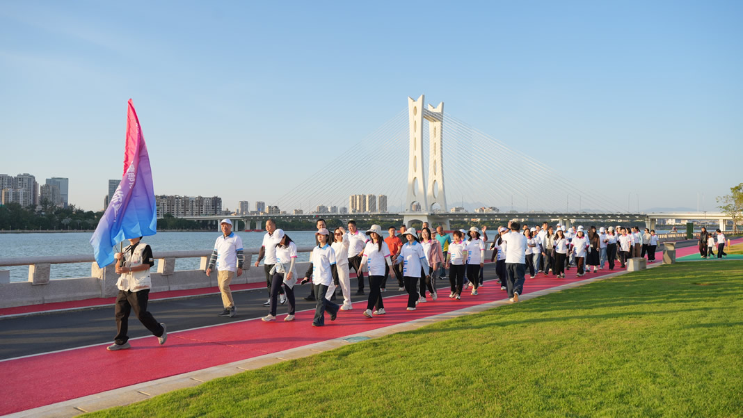 活動于當(dāng)日16:30正式拉開帷幕。在市分公司黨委余書記鳴哨引領(lǐng)下,健步走隊(duì)伍精神飽滿地沿江邊步道闊步前行。大家沐浴著冬日暖陽,沿途打卡植物迷宮、角花林等特色景點(diǎn),歡聲笑語中盡顯矯健身姿,終點(diǎn)處的“過線打卡”環(huán)節(jié),定格下每一張洋溢著活力的笑臉。