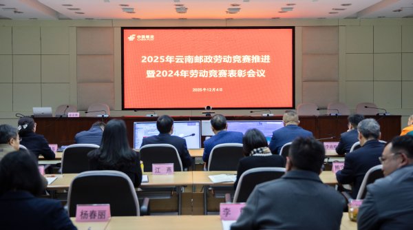 12月4日,云南省郵政工會牽頭組織召開“2025年云南郵政勞動競賽推進暨2024年勞動競賽表彰會議”。省分公司黨委委員、副總經理、工會主席李強,省分公司勞動競賽委員會成員單位領導及相關人員、受表彰的先進集體及個人代表、各州市分公司相關人員等參加會議。