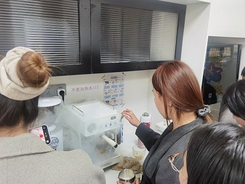 此次培訓(xùn)吸引了各工會小組長、咖啡愛好者以及想親自體驗咖啡制作的員工們參與。大家熱情高漲,輪流在七樓茶水間學(xué)習(xí)咖啡制作,現(xiàn)場學(xué)習(xí)氛圍十分濃厚。員工們在輕松愉悅的氛圍中,不僅學(xué)到了實用的咖啡制作技能,還增進(jìn)了彼此間的交流與互動,進(jìn)一步豐富了業(yè)余生活。