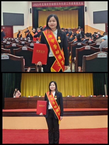 會上,羅英曉同志被授予2025年“北海市勞動模范”榮譽稱號,市委、市政府領導為其頒發(fā)榮譽證書和獎牌,對其長期以來扎根郵政一線、深耕郵政普惠金融服務、助力地方發(fā)展的突出業(yè)績給予充分肯定。