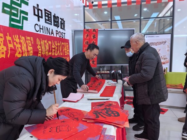短短兩小時活動,墨香四溢,氛圍熱烈。書法老師揮毫潑墨,為客戶送上寓意吉祥的春聯(lián)和福字,一幅幅精美的書畫作品在老師筆下應(yīng)運(yùn)而生。這些作品不僅展現(xiàn)了老師深厚的藝術(shù)功底,表達(dá)了老師們對郵政事業(yè)的熱愛和祝福,更是讓廣大客戶和員工深切感受到了來自省、市郵政工會的溫暖與關(guān)懷。