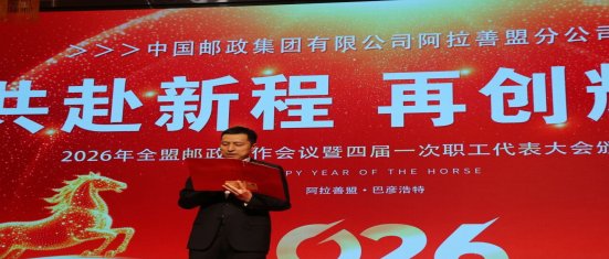 整場(chǎng)晚會(huì)既是過去奮斗成果的禮贊,更是新一年奮進(jìn)的號(hào)角。全體阿拉善盟郵政人將以綠色為底色,以使命為筆鋒,在戈壁深處書寫著新時(shí)代的郵路答卷——郵路縱穿千嶺,我心永駐如錨;2026再出發(fā),阿拉善盟郵政更出彩。