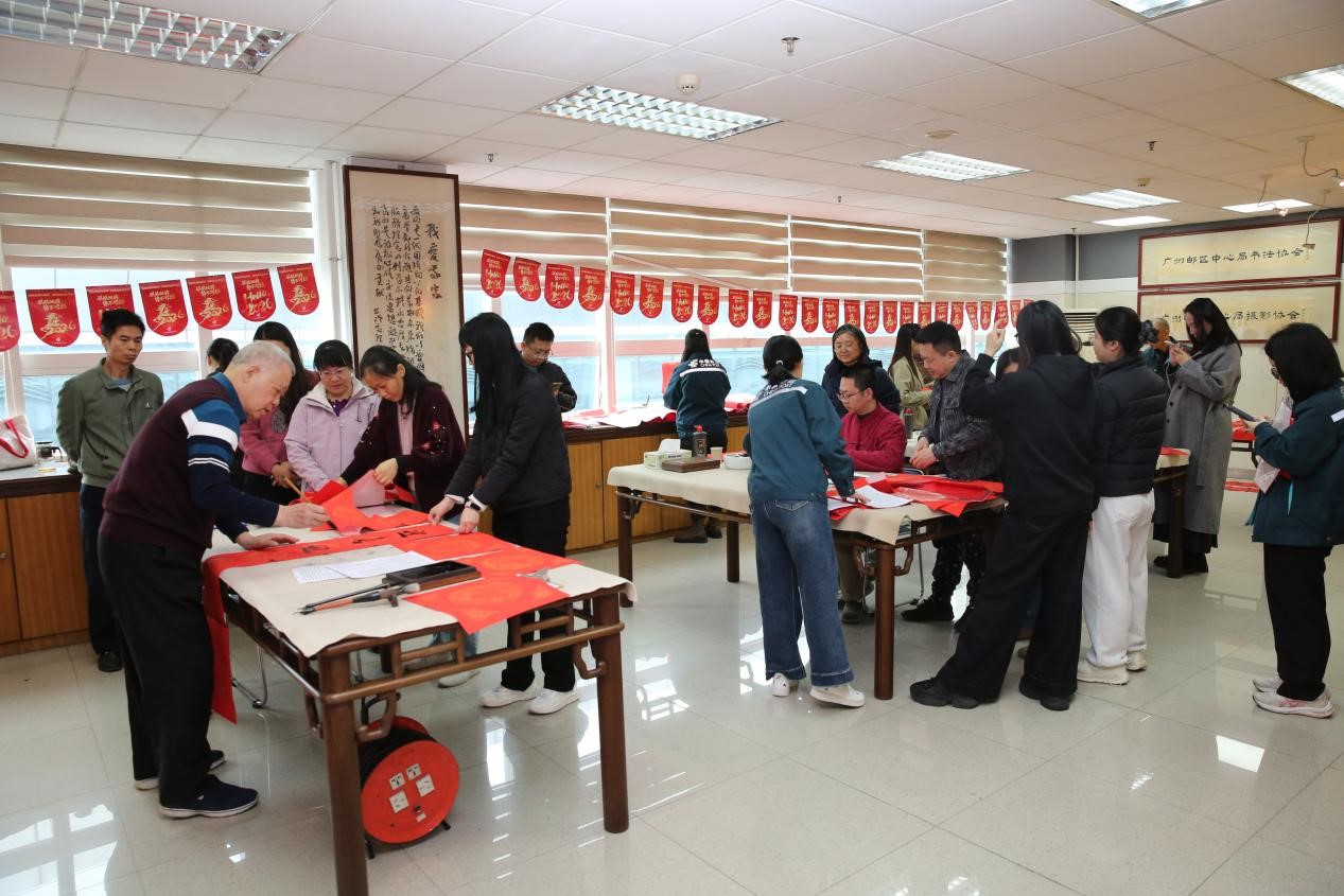紅紙鋪展,翰墨盈香。2月9日上午,廣州郵區(qū)中心工會(huì)組織開(kāi)展“郵區(qū)送?!ご郝?lián)添彩”2026年揮春活動(dòng),特邀退休老領(lǐng)導(dǎo)鄭李泰書(shū)記與書(shū)畫(huà)愛(ài)好者們一同揮毫潑墨,現(xiàn)場(chǎng)書(shū)寫(xiě)春聯(lián)、福字,為全體員工送上馬年新春祝福,四十余名員工踴躍參與,以傳統(tǒng)筆墨寄情,共迎新春佳節(jié)。