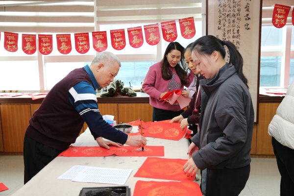 這次活動(dòng)的一大亮點(diǎn),是退休老領(lǐng)導(dǎo)鄭李泰書(shū)記的蒞臨參與。鄭書(shū)記精神飽滿(mǎn)、興致盎然,親手執(zhí)筆揮毫,與書(shū)畫(huà)愛(ài)好者們并肩書(shū)寫(xiě)新春祝福,每一筆都飽含深情,將濃濃的關(guān)懷與期許融入筆端。書(shū)寫(xiě)間隙,他還親切與在場(chǎng)員工交談,關(guān)切詢(xún)問(wèn)大家的工作近況與新年心愿,平易近人的態(tài)度、真摯暖心的關(guān)懷,讓現(xiàn)場(chǎng)氛圍愈發(fā)暖意融融。他親手書(shū)寫(xiě)的春聯(lián)與福字,成為員工們爭(zhēng)相收藏的珍貴“墨寶”。