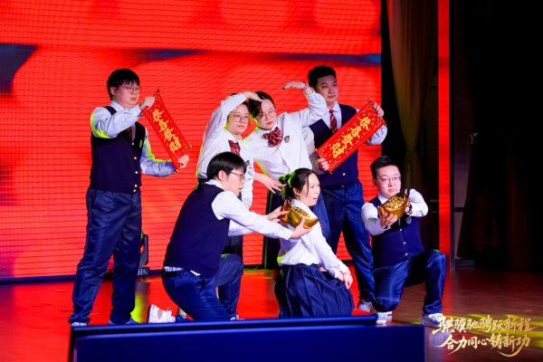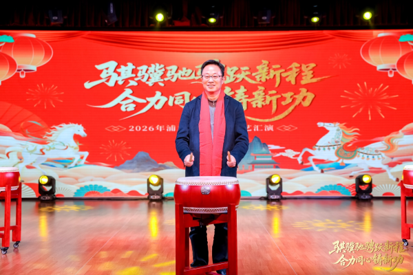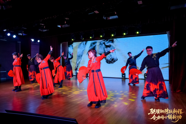 匯演伊始,區(qū)分公司總經(jīng)理、黨委書(shū)記手持幸運(yùn)鼓槌,沉穩(wěn)有力地敲響象征吉祥與奮進(jìn)的大鼓。鏗鏘鼓點(diǎn),寓意浦東郵政新歲將如駿馬奔騰、勇毅前行;陣陣鼓聲,傳遞著領(lǐng)導(dǎo)班子對(duì)全體員工的新春美好祝福,更凝聚起全體浦郵人 “合力同心鑄新功”的堅(jiān)定信念與奮進(jìn)力量,拉開(kāi)了文藝匯演的精彩序幕。